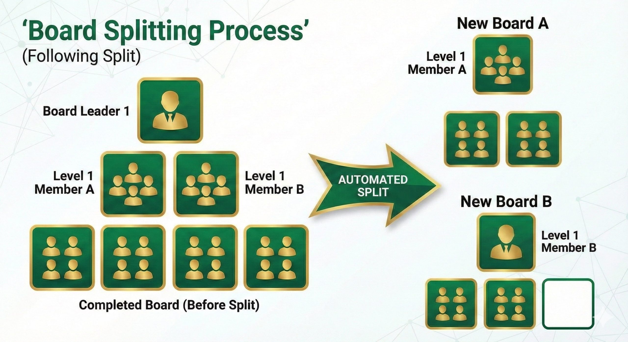 - Board Overflow Mismanagement: When boards fill quickly, overflow members must be placed into new or parallel boards instantly. Without automation, placement becomes inconsistent, leading to lost positions—a fatal blow to distributor confidence.