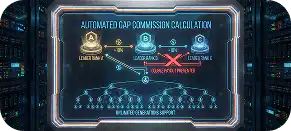 Configure rank rules, generation percentages, leadership bonuses and overrides without code changes.