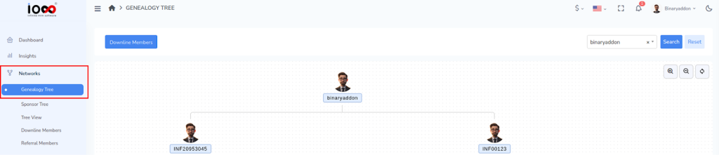 Step 1: Go to Network → Genealogy Tree from the dashboard.