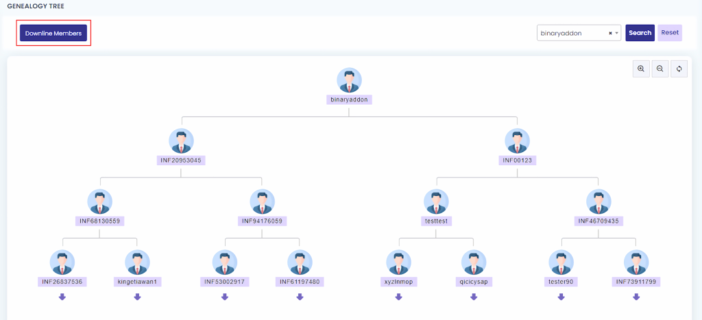 A complete list of all members in your downline network will be displayed.